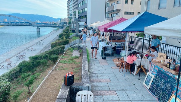 沼津駅南口から歩いて5分ぐらい。リバーサイドホテルとか、沼津蒸留所があるらへんで、狩野川沿いのところをかのがわ風のテラスっていう。ここは、い···