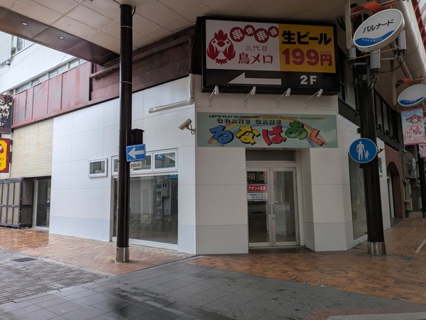 仲見世商店街のゲームセンター「るなぱあく」のあったところ、「テナント募集」になってる···